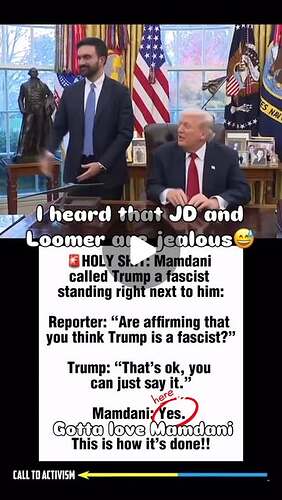 Trump was called a Fascist to his face by Mamdani when a reporter asked: Trump said “t’s ok, just say it. It’s easier than explaining it.” before Mamdani can answer.